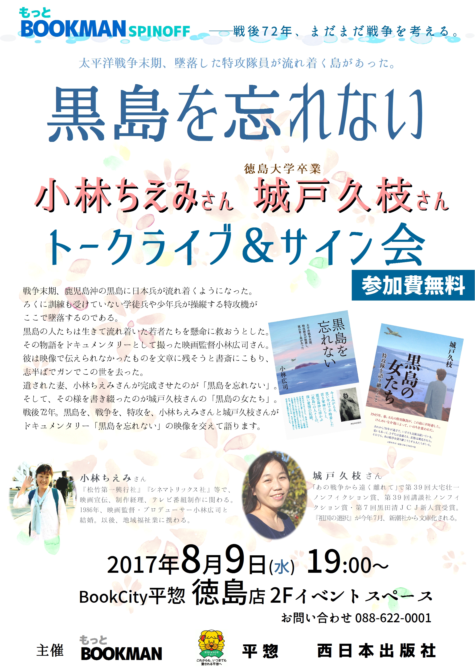 イベント開催のお知らせ 2017年7月24日 リーダーズの輪 教科書では教えてくれない戦争の悲惨さと人々の優しさを考えるトークライブ&サイン会です。終戦記念日の前にあらためて戦争というものがどういう事だったのか思い起こしてみるのはいかかでしょうか。 是非、ご参加ください。 「サイン会のお知らせ 」 「羽尻利門さん絵画展 」